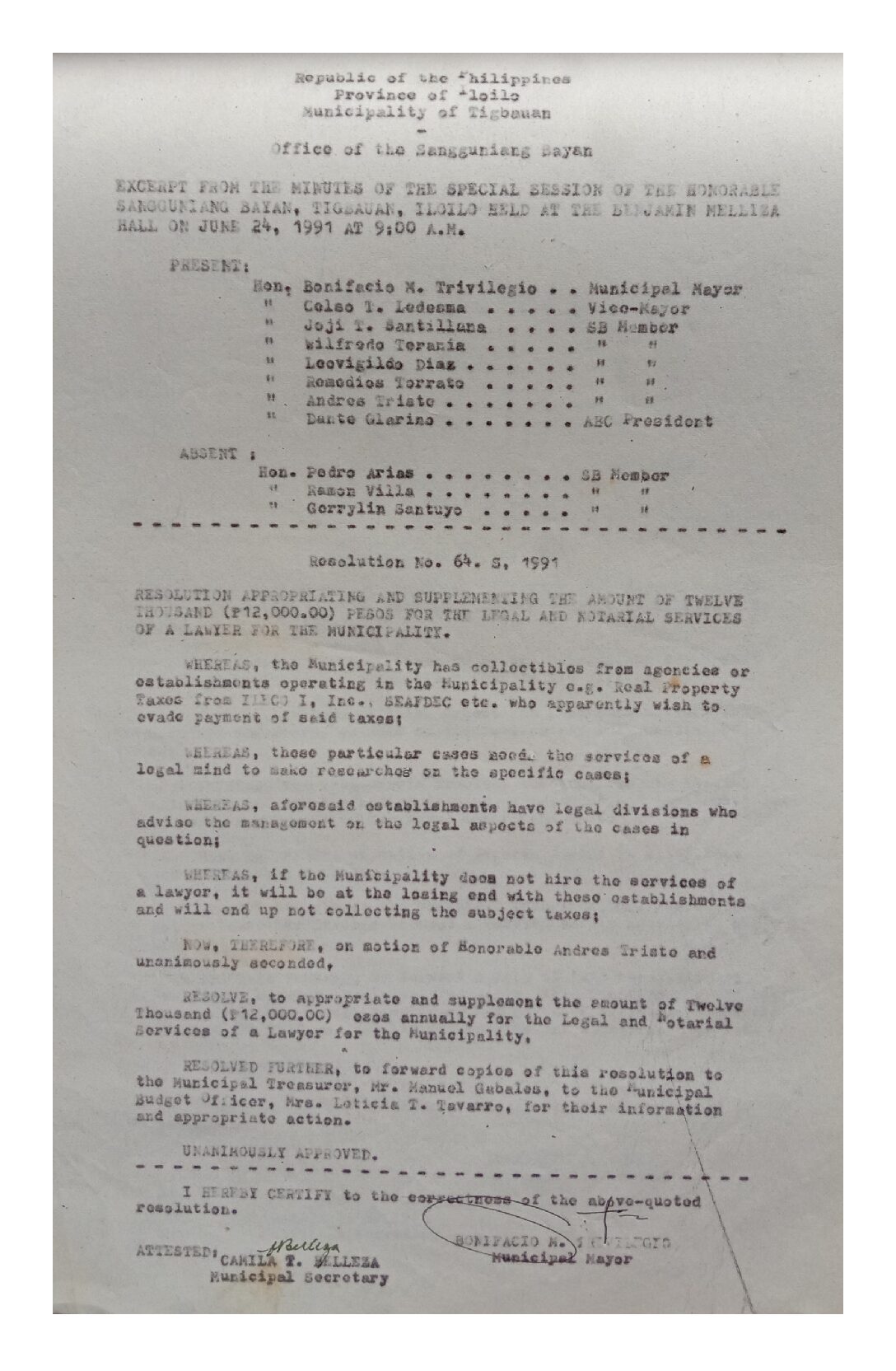 Resolution No. 91-064