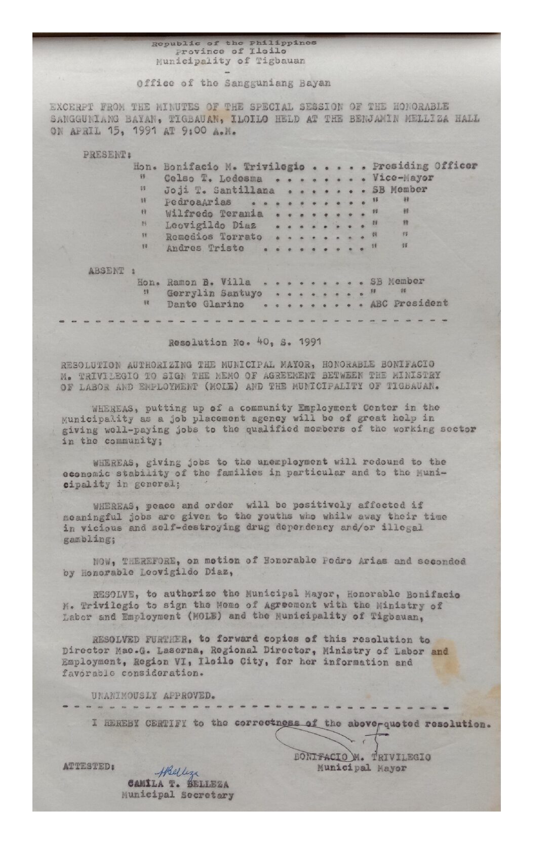 Resolution No. 91-040