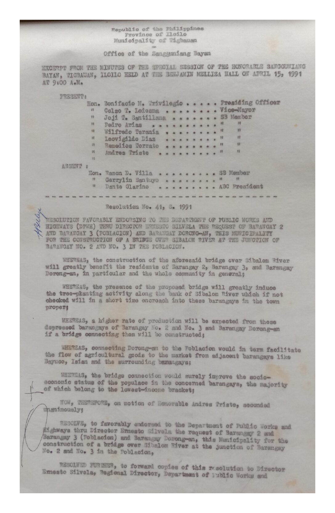 Resolution No. 91-041