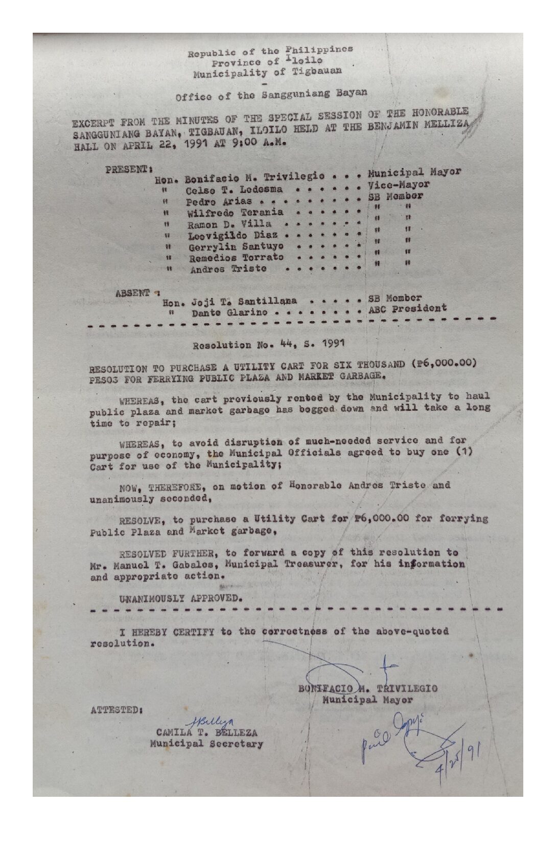 Resolution No. 91-044