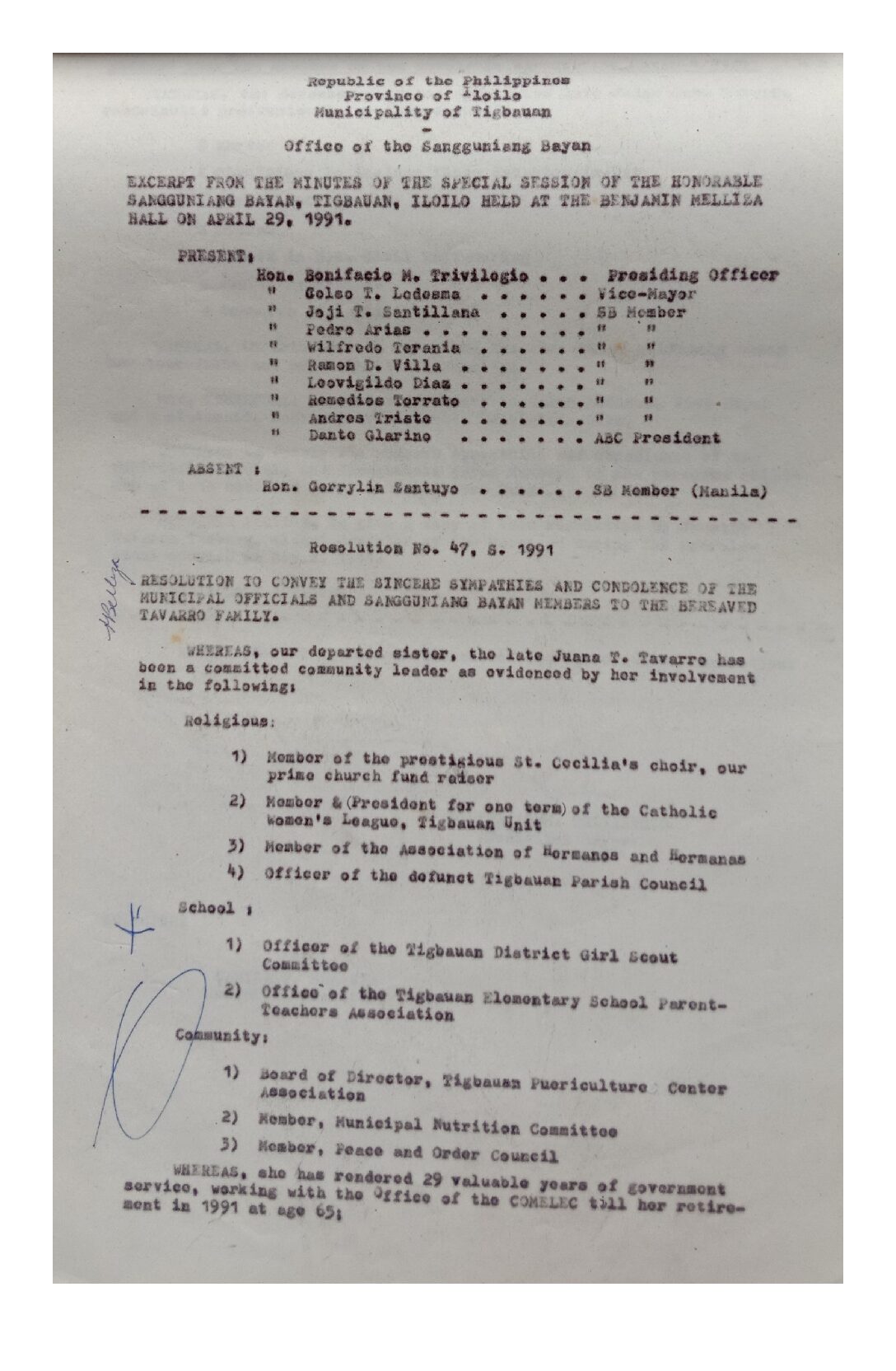 Resolution No. 91-047