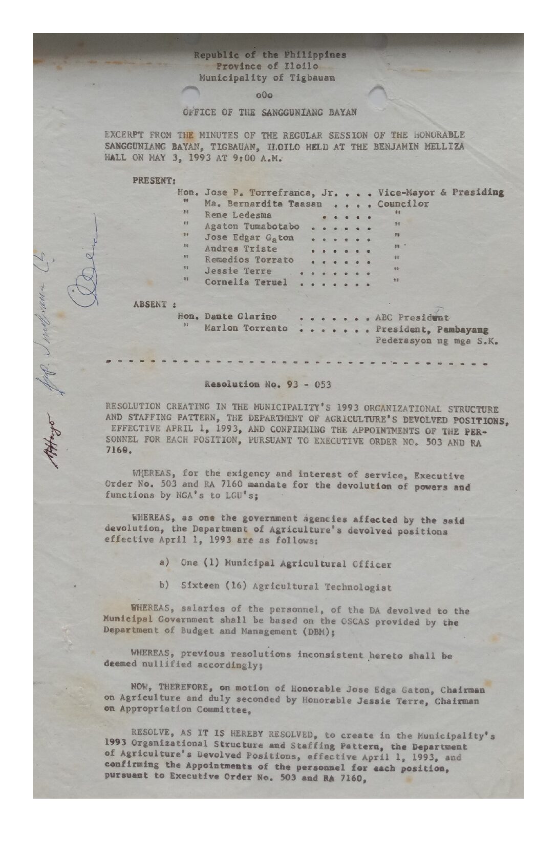 Resolution No. 93-053