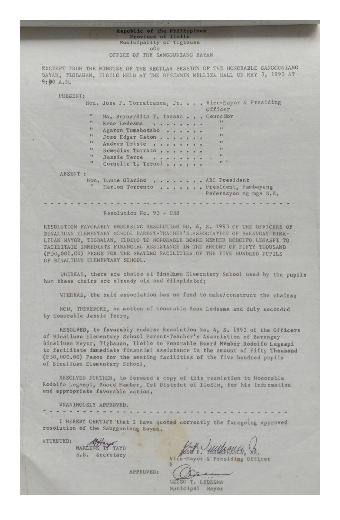 Resolution No. 93-058