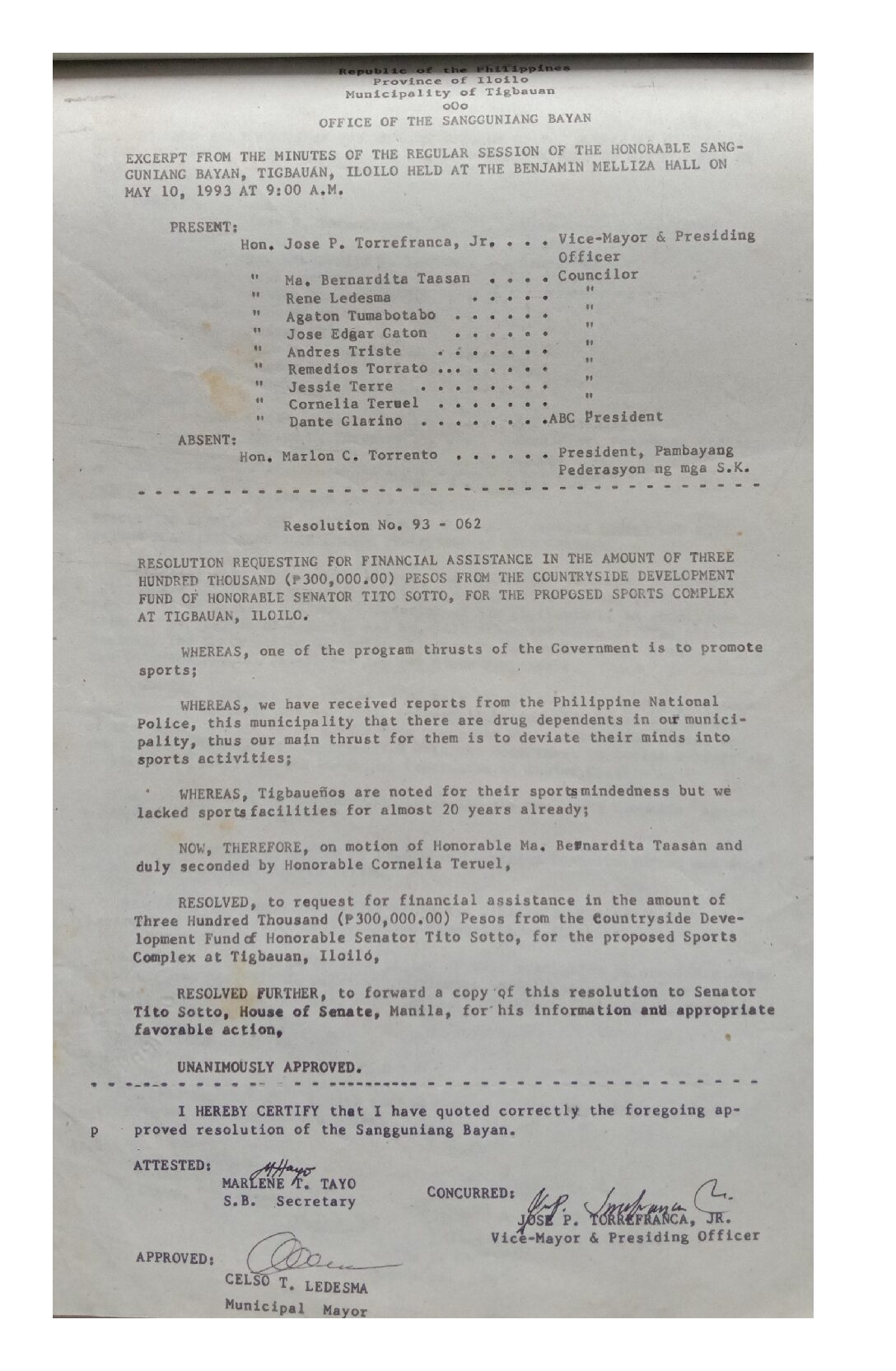 Resolution No. 93-062
