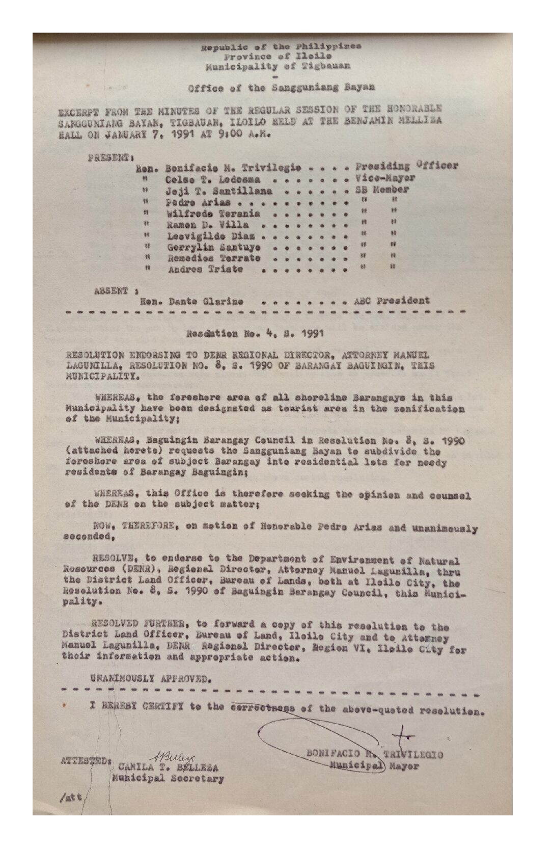 Resolution No. 91-004