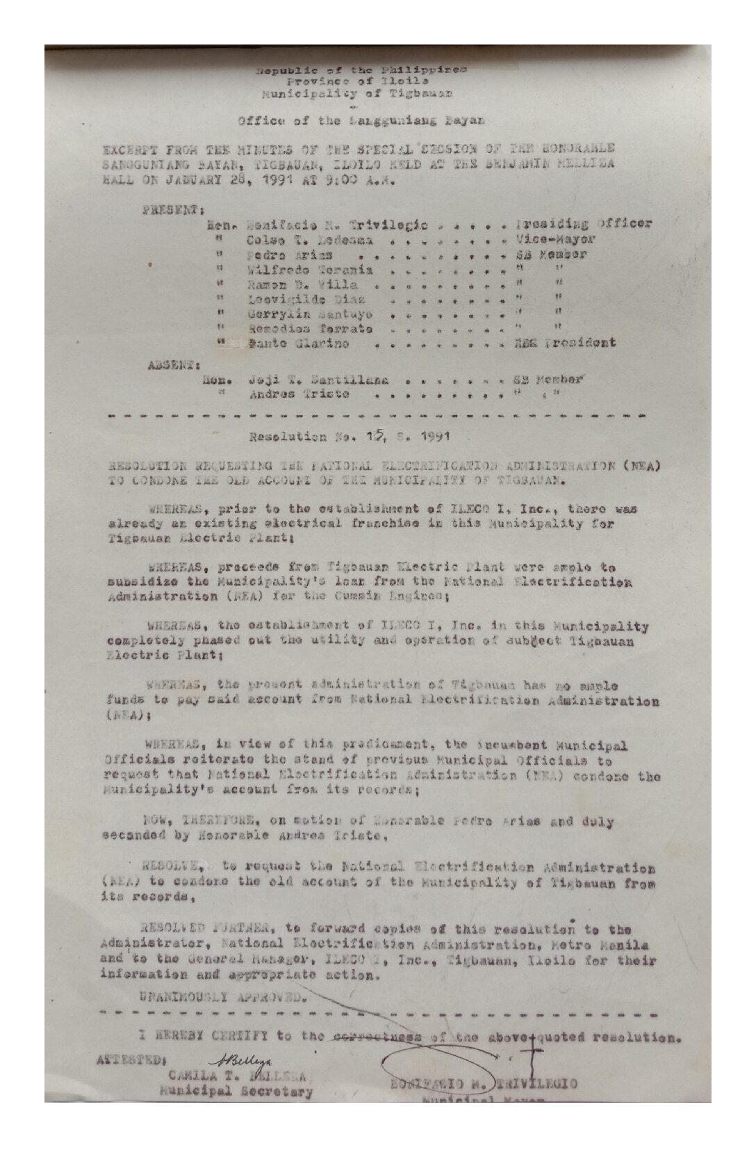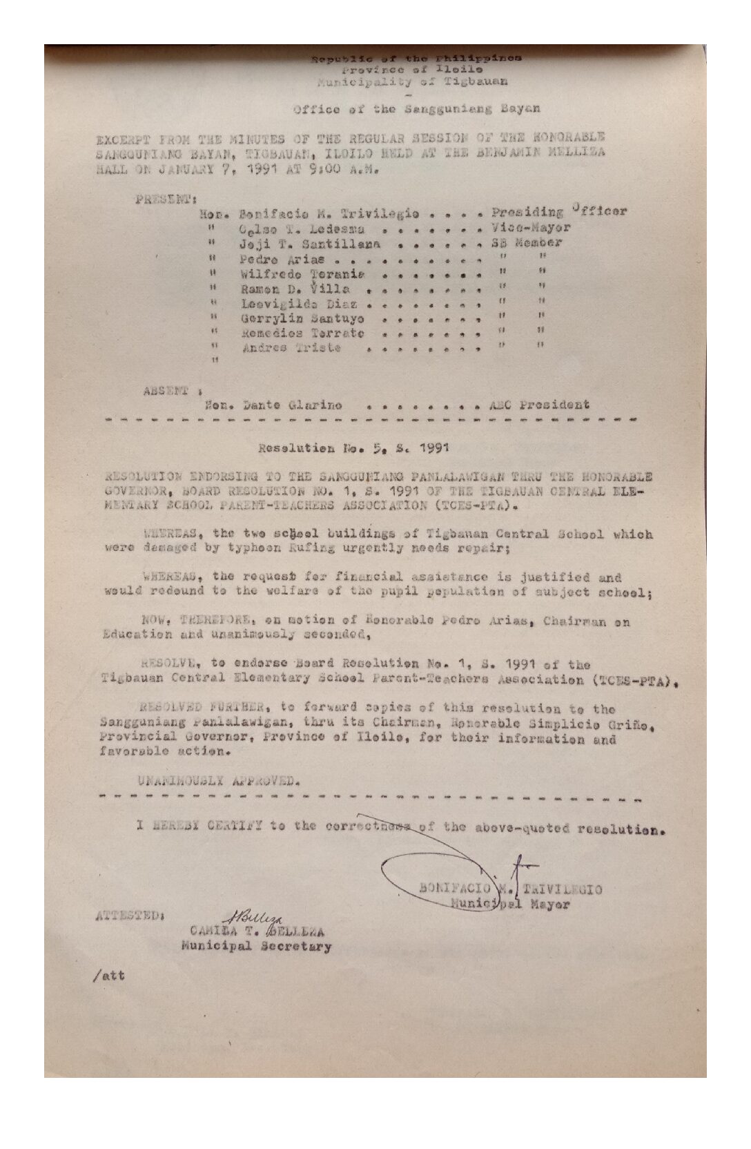 Resolution No. 91-001