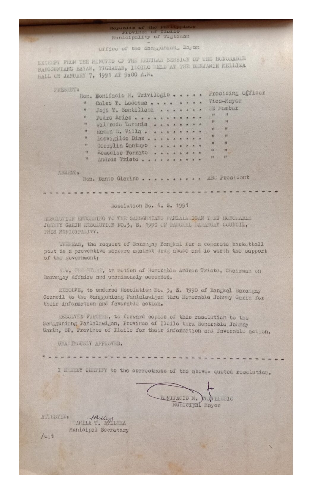 Resolution No. 91-006