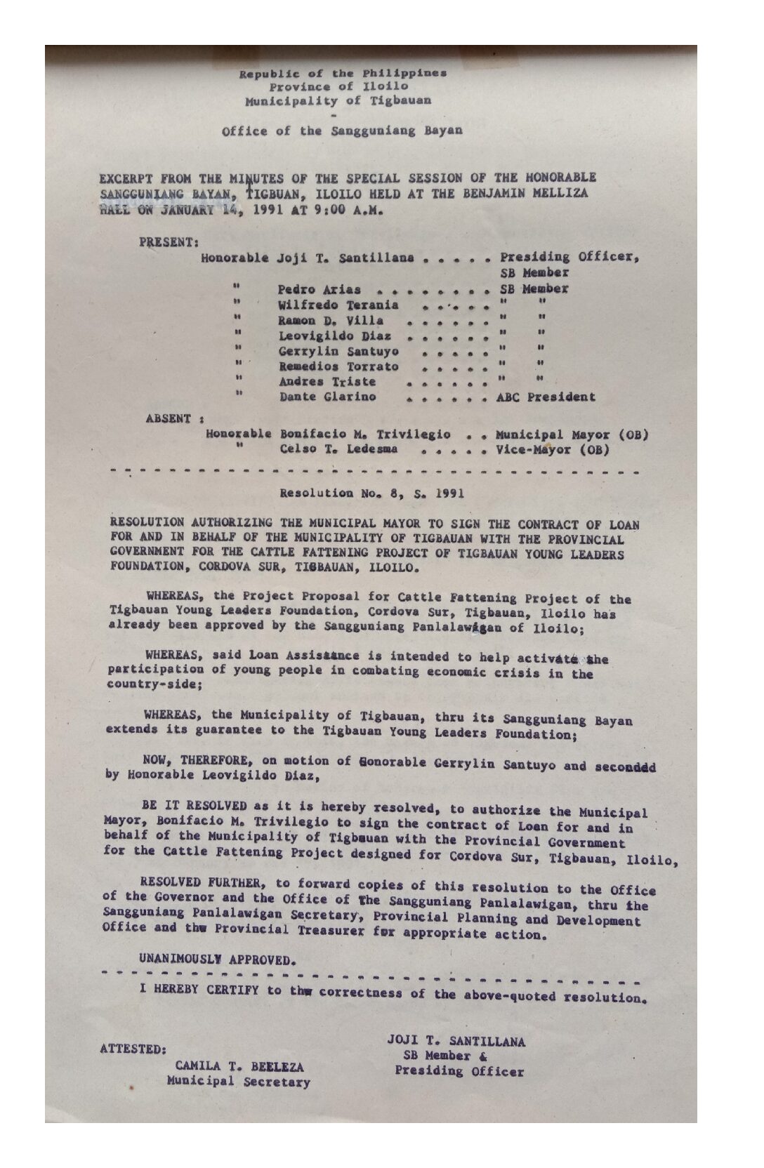 Resolution No. 91-008