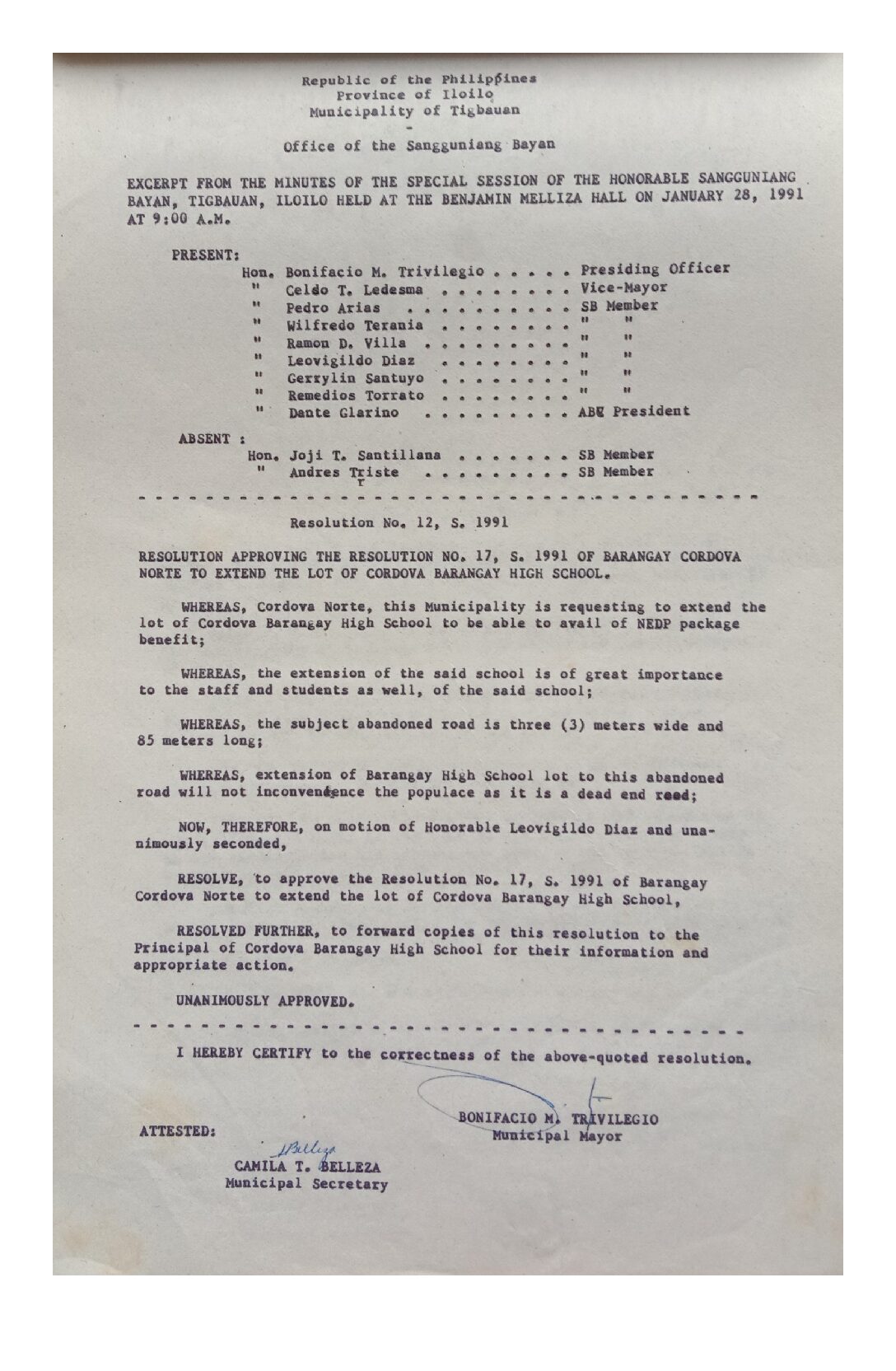 Resolution No. 91-002