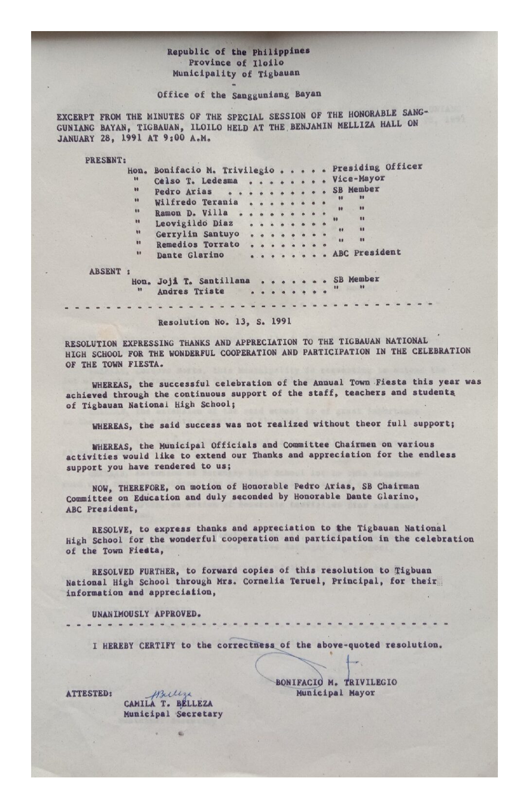 Resolution No. 91-013