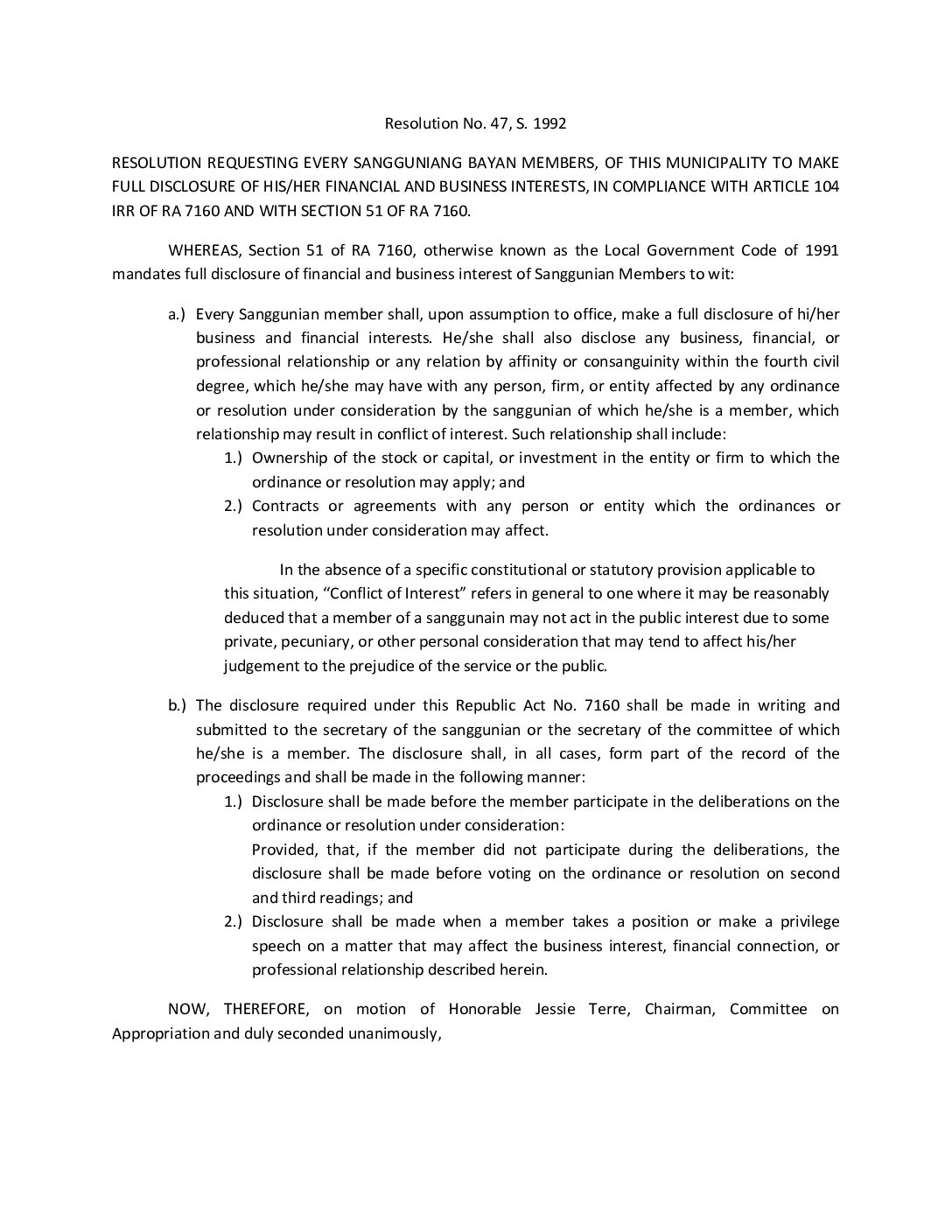Resolution No. 92-047