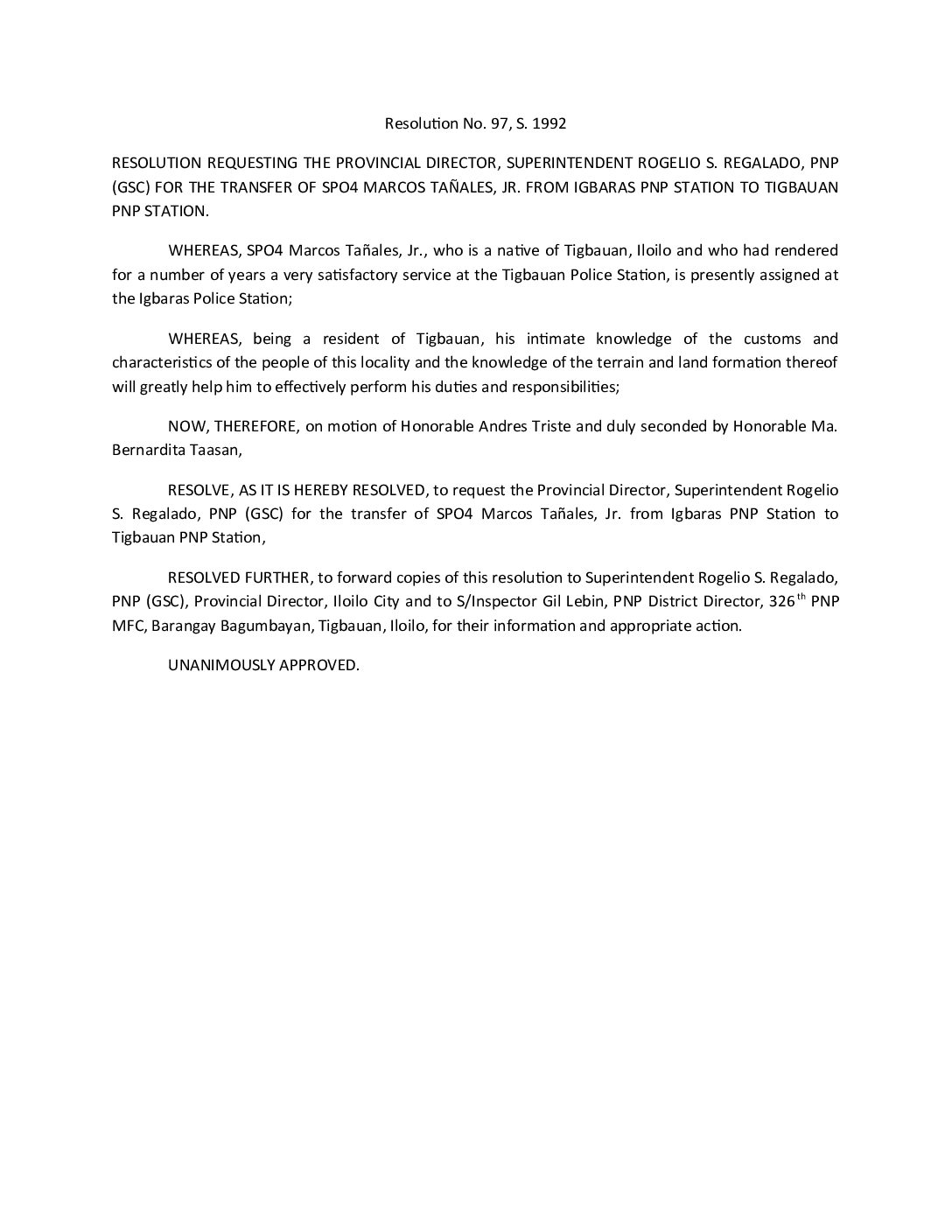 Resolution No. 92-097