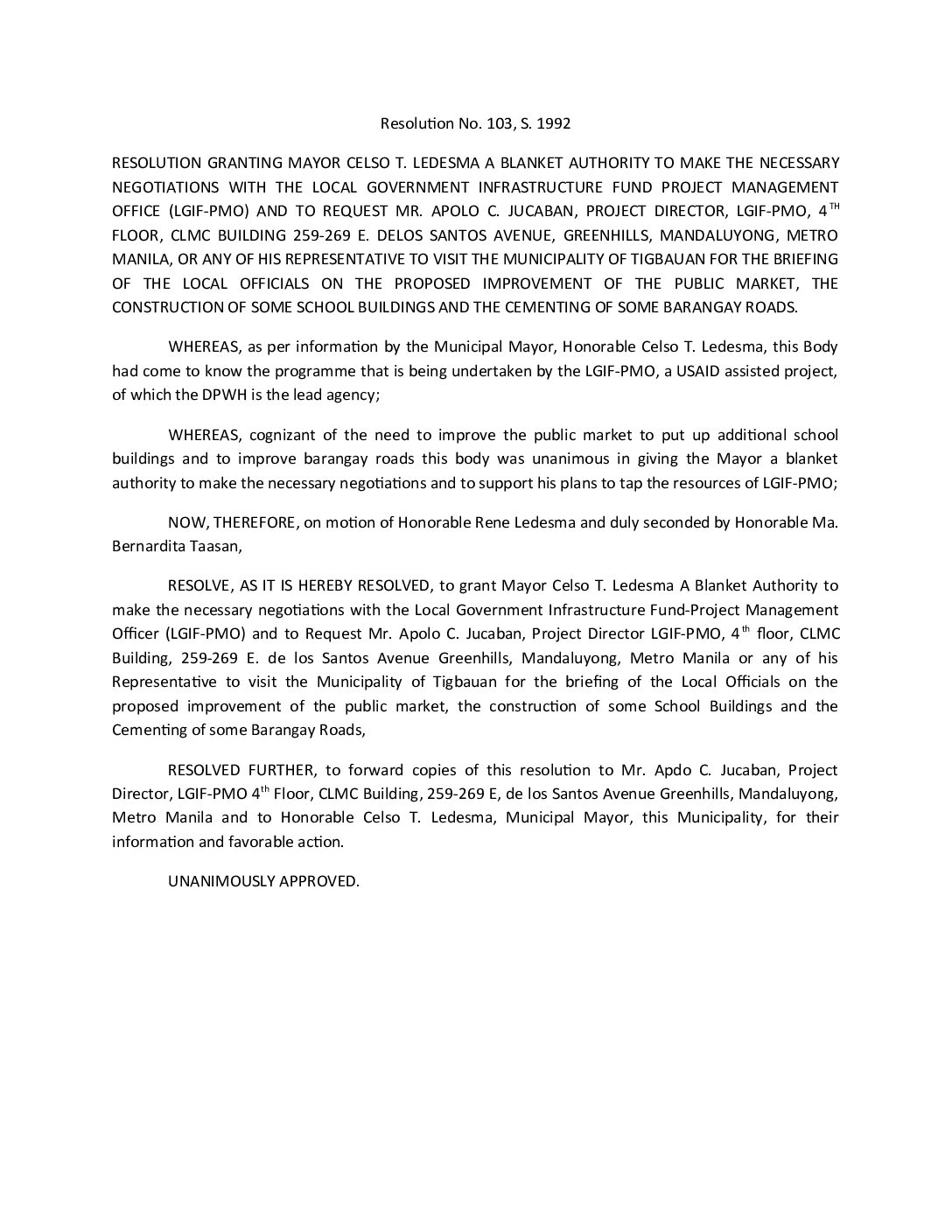 Resolution No. 92-103