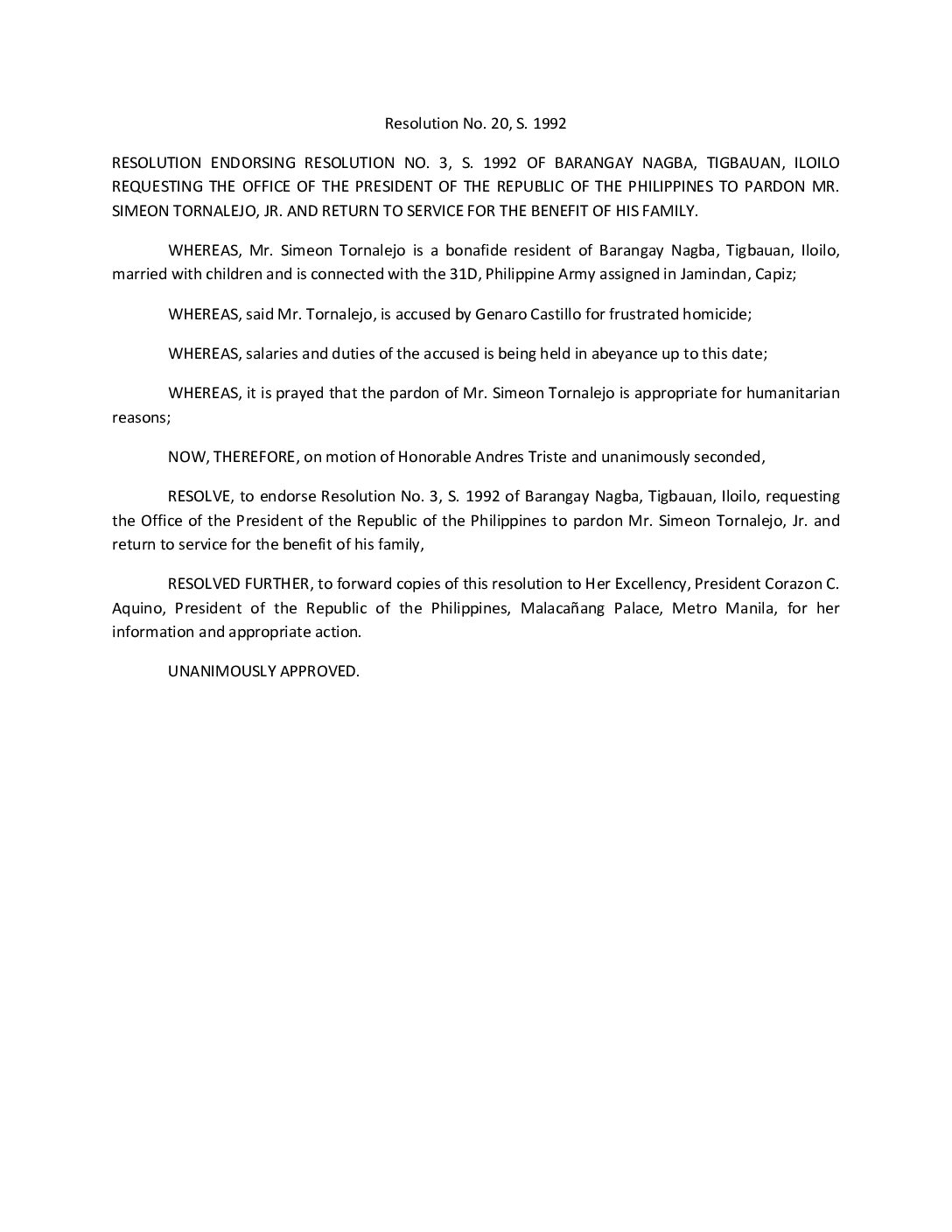 Resolution No. 92-020