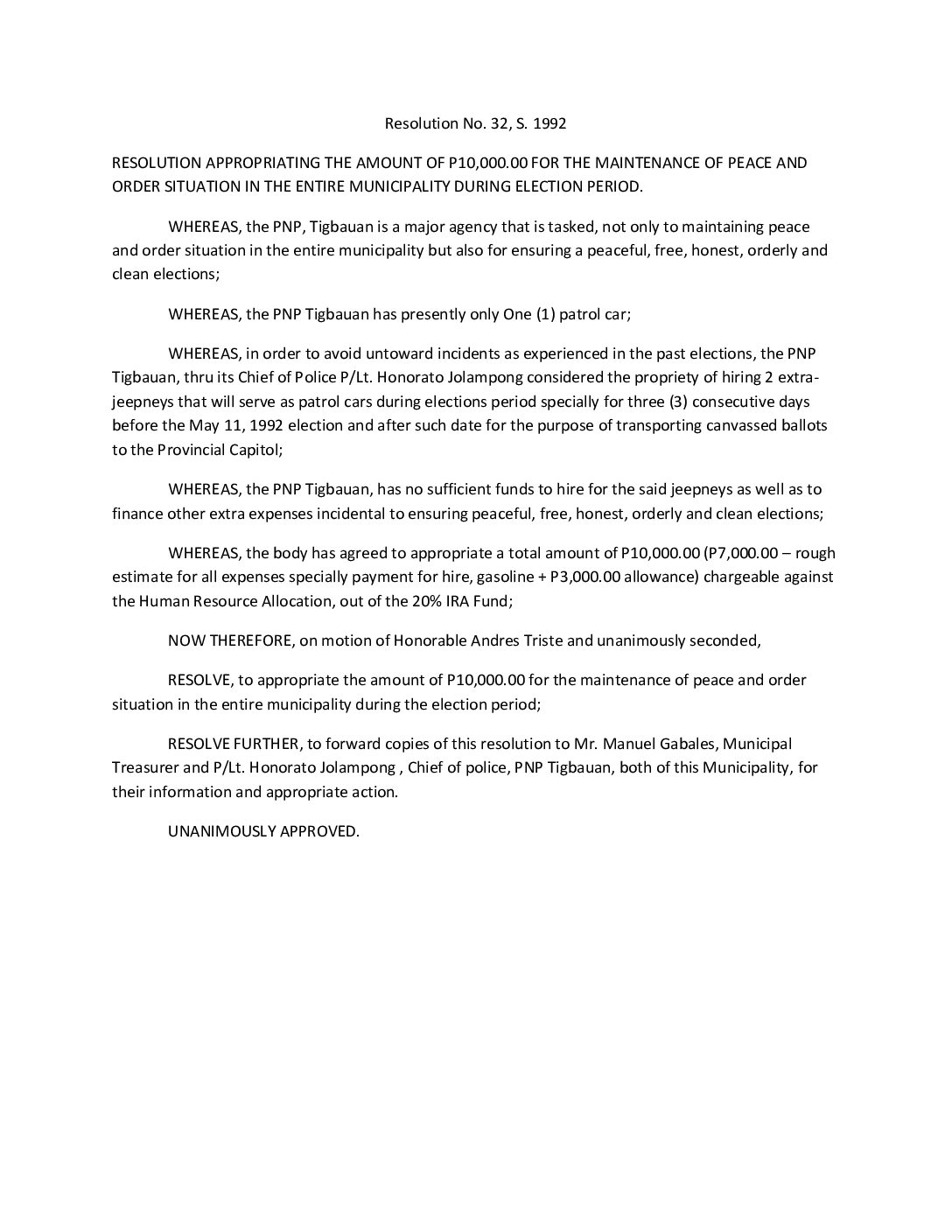 Resolution No. 92-032