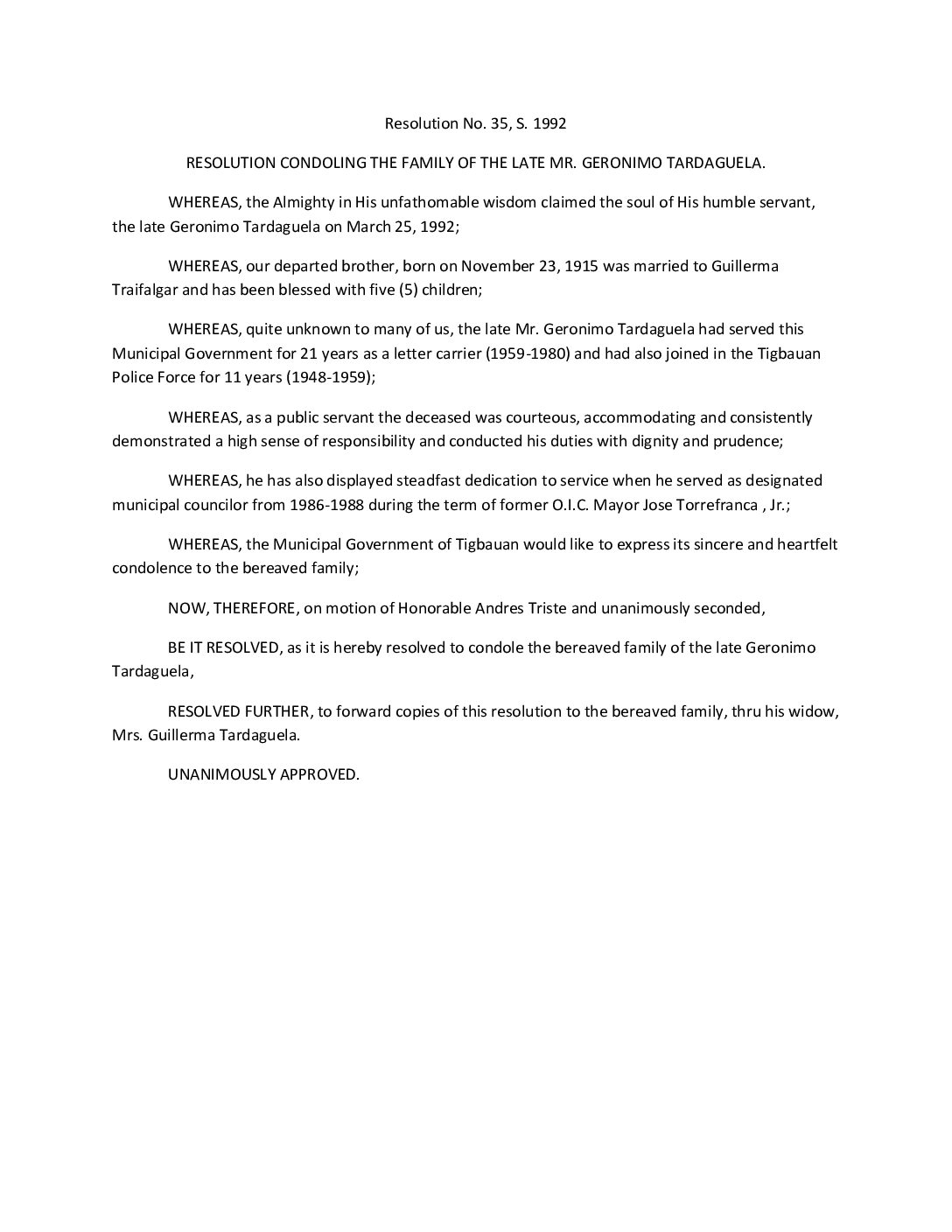 Resolution No. 92-035