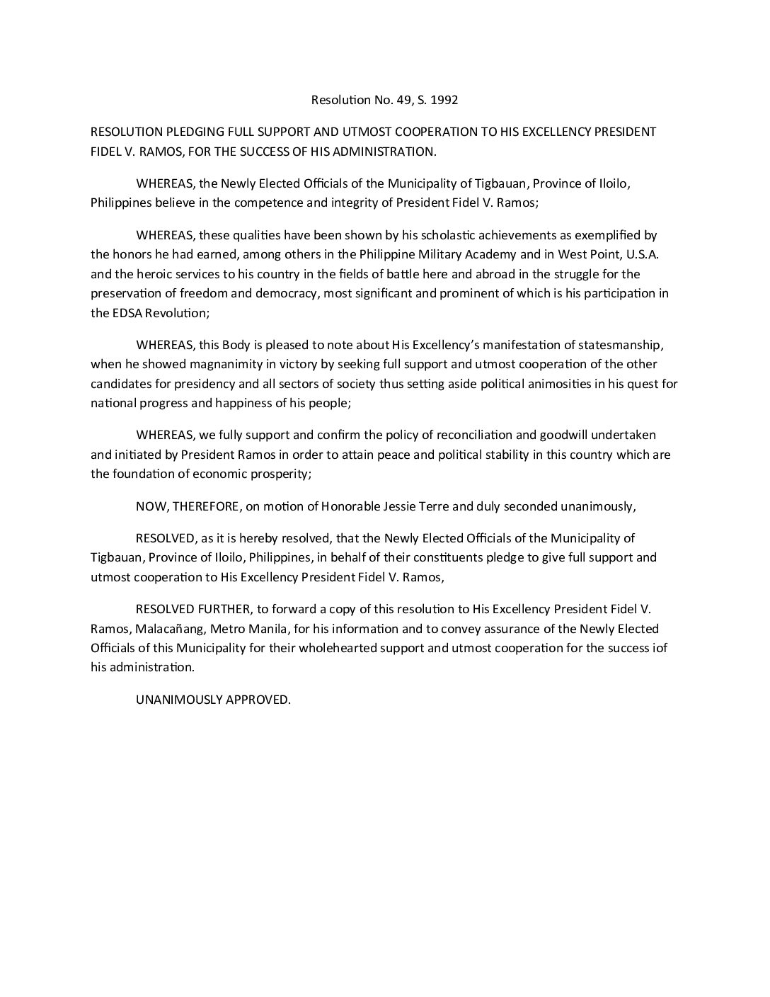 Resolution No. 92-049