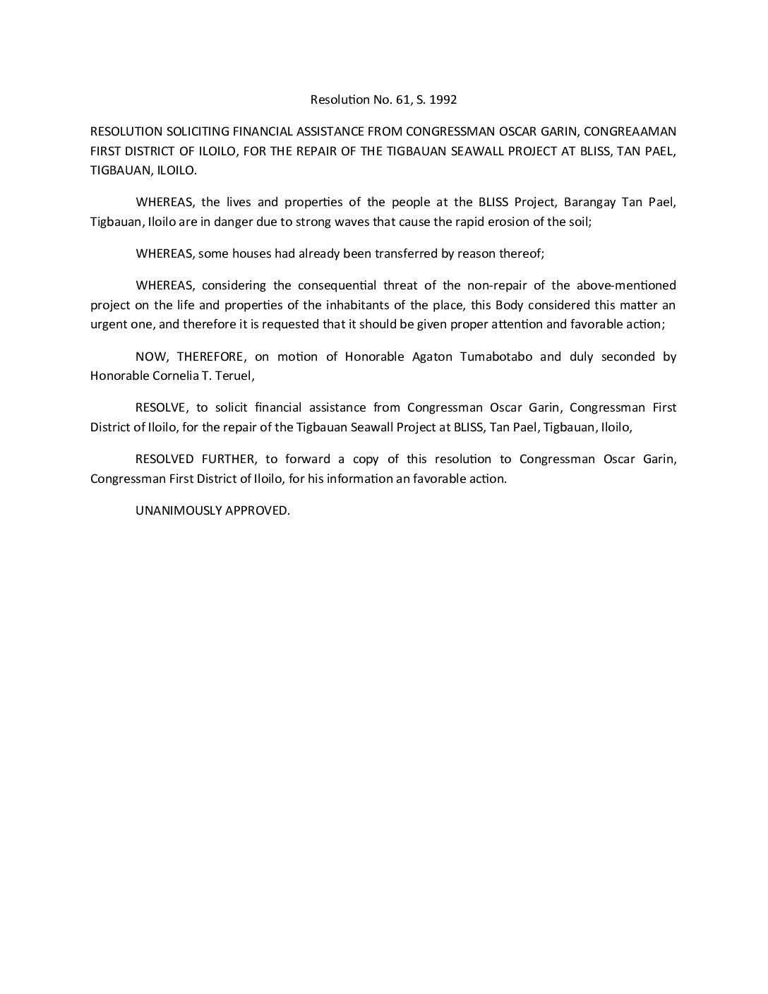 Resolution No. 92-061