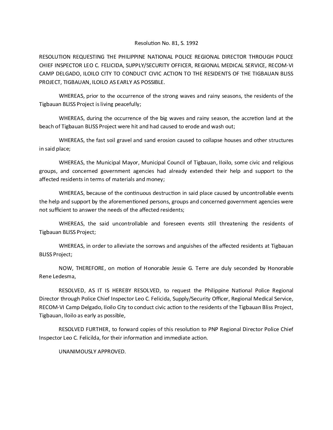 Resolution No. 92-081