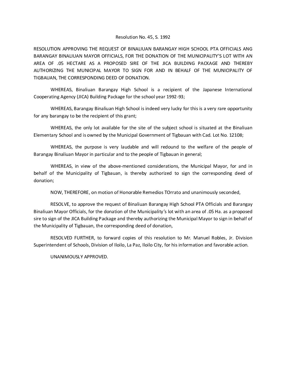 Resolution No. 92-045