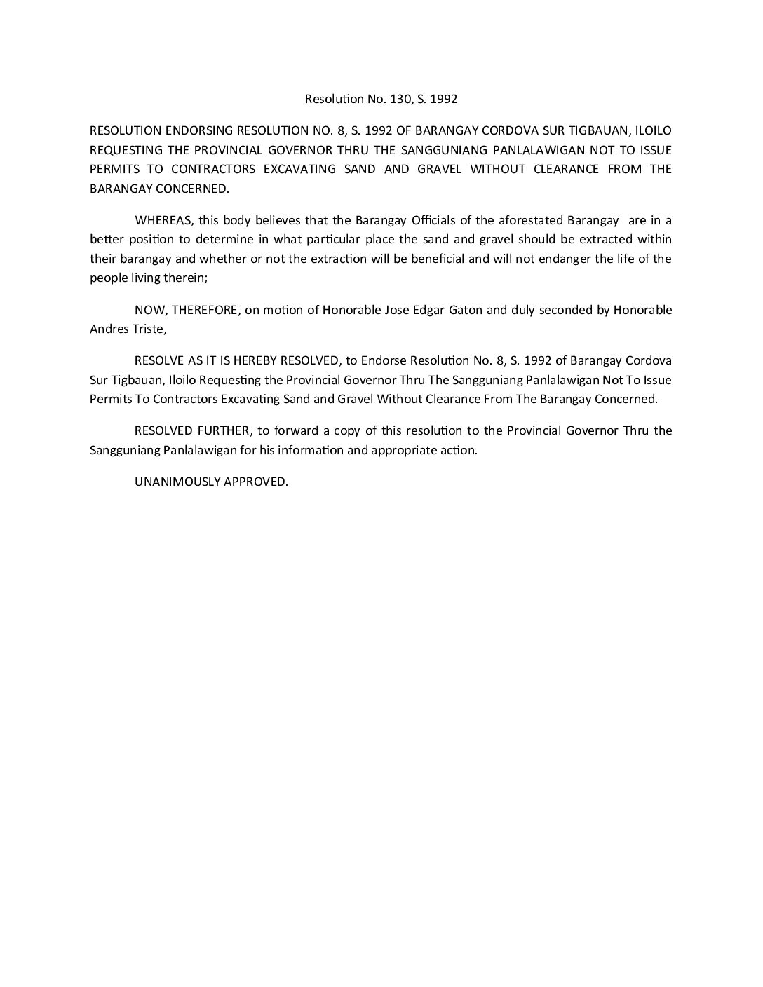 Resolution No. 92-130
