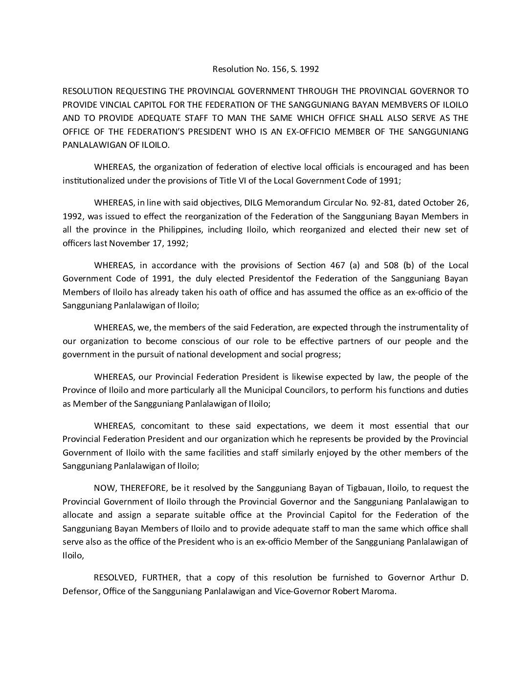 Resolution No. 92-156
