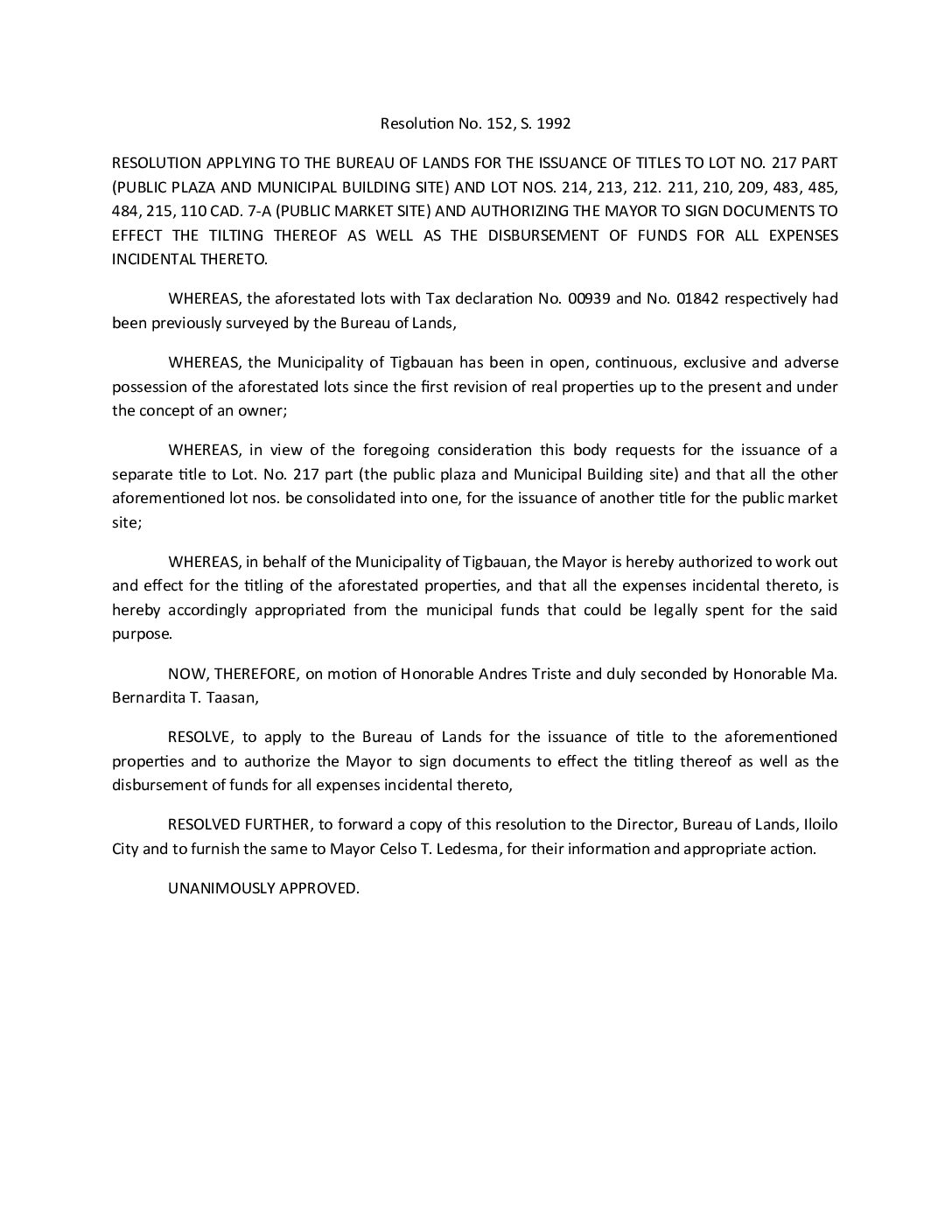 Resolution No. 92-152