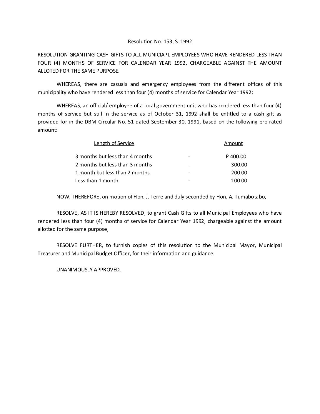 Resolution No. 92-153
