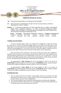 March 27, 2020 admin Comment off File Type: pdf File Size: 762 KB Categories: COMMITTEE REPORTS Tags: CY 2019 Barangays Annual Budget and Annual Investment Plan Author: HON. DENNIS T. VALENCIA Share: Resolution No. 2020-032 – RESOLUTION CONFORMING AND APPROVING THE FOLLOWING: A.) CY 2020 BARANGAY ANNUAL BUDGETS & 2020 ANNUAL INVESTMENT PLANS, 20% DEVELOPMENT PLANS, 10% SK FUND, 5% BDRRMF AND GAD ATTRIBUTIONS OF BARANGAYS 7 POBLACION, BUENAVISTA AND DAPDAP B.) BARANGAY NAPNAPAN SUR CY 2019 SK SUPPLEMENTAL BUDGET, ALL OF THIS MUNICIPALITY. Resolution No. 2020-034 – RESOLUTION CONFORMING AND APPROVING THE CY 2020 BARANGAY ANNUAL BUDGETS AND 2020 ANNUAL INVESTMENT PLANS, 20% DEVELOPMENT FUND, 10% SK FUND, 5% BDRRMF AND GAD ATTRIBUTIONS OF BARANGAYS ALUPIDIAN, 8 POBLACION, AND ISIAN THIS MUNICIPALITY.
