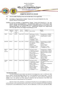 July 24, 2019 admin Comment off File Type: pdf File Size: 962 KB Categories: COMMITTEE REPORTS Tags: CY 2019 Supplemental Budgets and Supplemental AIPs Author: HON. MA. GERRYLIN SANTUYO-CAMPOSAGRADO Share: Resolution No. 2019-087 Resolution No. 2019-091