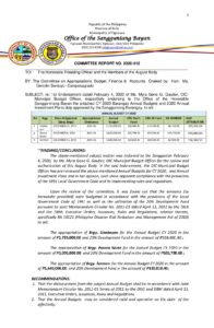 February 4, 2020 admin Comment off File Type: pdf File Size: 764 KB Categories: COMMITTEE REPORTS Tags: Budget, Committee on Appropriations, Finance & Accounts Share: Resolution No. 2020-014 – RESOLUTION REQUESTING FROM THE NATIONAL HISTORICAL COMMISSION FINANCIAL ASSISTANCE IN THE AMOUNT OF TWO MILLION PESOS (P2,000,000.00) TO DEFRAY EXPENSES FOR REFURBISHING/RECONSTRUCTION AND IMPROVEMENT OF THE PANAY LANDING MEMORIAL IN VIEW OF THE CELEBRATION OF THE 75TH ANNIVERSARY OF THE LIBERATION OF THE ISLAND OF PANAY AND ROMBLON ON MARCH 18, 2020. Resolution No. 2020-015 – RESOLUTION SUPPORTING THE SPECIAL PROGRAM IN JOURNALISM (SPJ) OF TIGBAUAN NATIONAL HIGH SCHOOL, TIGBAUAN, ILOILO.