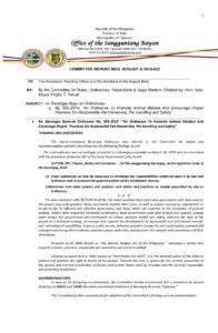 June 26, 2019 admin Comment off File Type: pdf File Size: 876 KB Categories: COMMITTEE REPORTS Tags: Animal Welfare Author: Hon. Vice Mayor Virgilio T. Teruel rs_page_bg_color: Share: COMMITTEE REPORT NOS. 2019-021 & 2019-022 COMMITTEE REPORT NO. 2019-020