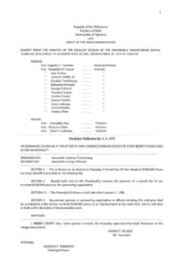 November 24, 1979 admin admin Comment off File Type: pdf File Size: 24 KB Categories: SB Ordinance Tags: 1979 Author: Eugenio T. Torrento Share: Municipal Ordinance No. 1979-004 Municipal Ordinance No. 1979-006