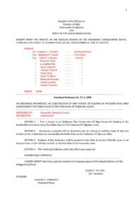 December 20, 1980 admin admin Comment off File Type: pdf File Size: 24 KB Categories: SB Ordinance Tags: 1980 Author: Eugenio T. Torrento Share: Municipal Ordinance No. 1980-009 Municipal Ordinance No. 1980-035