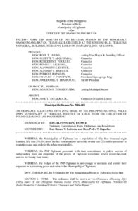 January 2, 2006 admin Comment off File Type: pdf File Size: 81 KB Categories: SB Ordinance Tags: PHILIPPINE NATIONAL POLICE, PNP Author: Hon. Alfonsito E. Estoce Share: Resolution No. 2005-100 Resolution No. 2006-001