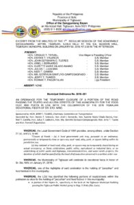 January 3, 2018 admin Comment off File Type: pdf File Size: 799 KB Categories: SB Ordinance Tags: TEMPORARY CLOSURE Author: HON. JERRY T. TUARES Share: Resolution No. 2018-001 Resolution No. 2018-006