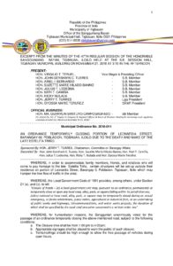Municipal Ordinance No. 2018-011 – AN ORDINANCE TEMPORARILY CLOSING PORTION OF LEONARDIA STREET, BARANGAY 06, POBLACION, TIGBAUAN, ILOILO DUE TO THE DEATH AND WAKE OF THE LATE ESTELITA TRIÑO.