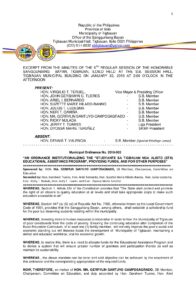 January 30, 2019 admin Comment off File Type: pdf File Size: 889 KB Categories: SB Ordinance Tags: STUDYANTE SA TIGBAUAN NGA ALISTO (STA) EDUCATIONAL ASSISTANCE PROGRAM Author: HON. MA. GERRYLIN SANTUYO CAMPOSAGRAD rs_page_bg_color: Share: COMMITTEE REPORT NO. 2019-005 Appropriation Ordinance No. 2019-001 Supplemental Budget No. 2019-001
