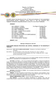 May 2, 2019 admin Comment off File Type: pdf File Size: 896 KB Categories: SB Ordinance Tags: AEDES-BORNE DISEASES Author: HON. SUZETTE MARIE HILADO-BANNO Share: Resolution No. 2019-039 Resolution No. 2019-040