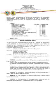 January 3, 2020 admin Comment off File Type: pdf File Size: 715 KB Categories: SB Ordinance Tags: TEMPORARY CLOSURE Author: HON. MARLON R. TERUÑEZ Share: Resolution No. 2019-157 Resolution No. 2020-001