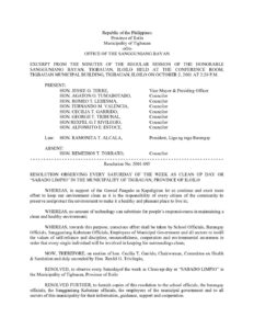 Tags: OBSERVING EVERY SATURDAY OF THE WEEK AS CLEAN UP DAY OR “SABADO LIMPIO”
