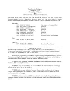October 9, 2001 admin Comment off File Type: pdf File Size: 43 KB Categories: RESOLUTIONS Author: Hon. Fernando M. Valencia Share: Resolution No. 2001-106 Resolution No. 2001-109