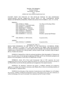 October 23, 2001 admin Comment off File Type: pdf File Size: 45 KB Categories: RESOLUTIONS Author: Hon. Rexfel G. Trivilegio Share: Resolution No. 2001-112 Resolution No. 2001-114