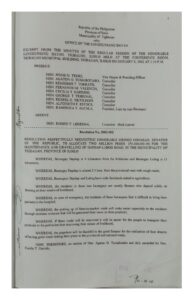 January 8, 2002 admin Comment off File Type: pdf File Size: 1 MB Categories: RESOLUTIONS Author: HON. AGATON O. TUMABOTABO Share: Resolution No. 2002-001 Resolution No. 2002-006