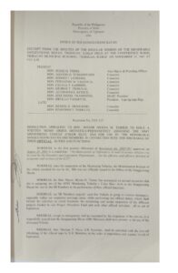 November 20, 2002 jaylord Comment off File Type: pdf File Size: 1 MB Categories: RESOLUTIONS Author: HON. ROMEO T. LEDESMA Share: Resolution No. 2002-114 Resolution No. 2002-116