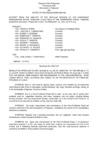 February 19, 2003 jaylord Comment off File Type: pdf File Size: 38 KB Categories: RESOLUTIONS Author: Hon. George T. Tribunal Share: Resolution No. 2003-011 Resolution No. 2003-023