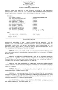 February 19, 2003 jaylord Comment off File Type: pdf File Size: 38 KB Categories: RESOLUTIONS Author: Hon. Rexfel G. Trivilegio Share: Resolution No. 2003-028 Resolution No. 2003-010