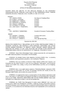 April 30, 2003 jaylord Comment off File Type: pdf File Size: 43 KB Categories: RESOLUTIONS Author: HON. ROMEO T. LEDESMA Share: Resolution No. 2003-045 Resolution No. 2003-044
