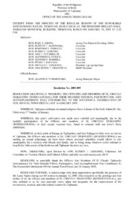 January 19, 2005 admin Comment off File Type: pdf File Size: 63 KB Categories: RESOLUTIONS Author: HON. ROMEO T. LEDESMA Share: Resolution No. 2005-010 Resolution No. 2005-004