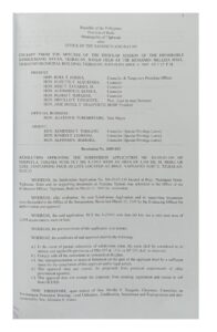 April 6, 2005 admin admin Comment off File Type: pdf File Size: 1 MB Categories: RESOLUTIONS Author: HON. ORVILLO T. TANGENTE Share: Municipal Ordinance No. 2005-002 Resolution No. 2005-034